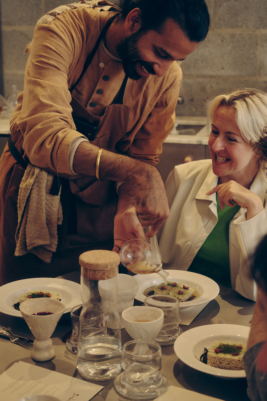 Last autumn, he hosted a six-course Sunday Roast supper club at our Stoke Newington project during Flawk’s Objects Pantry, a week-long exhibition for London Design Festival. The meal reimagined the classic British tradition through a playful, thoughtful lens, drawing from Ajay’s Sikh upbringing, travel experiences and architectural training.