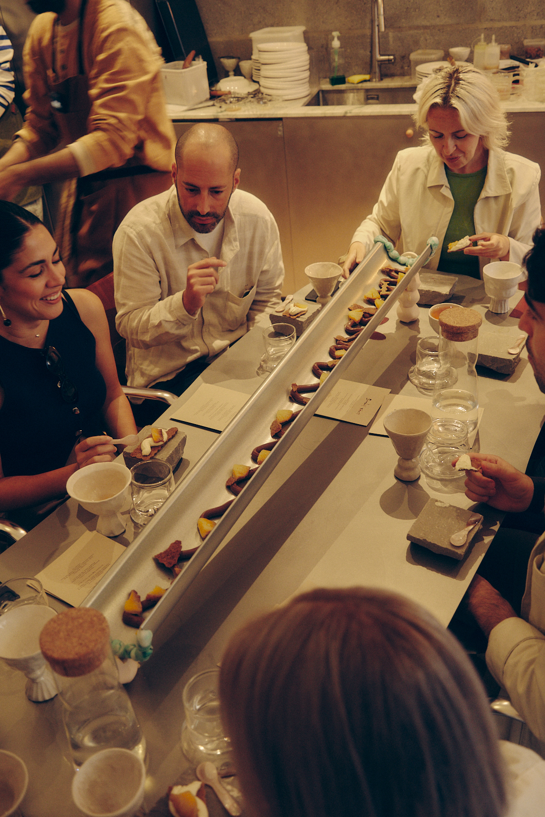 I observe styles and aesthetics closely, so we incorporated bespoke design elements, like the glassware by Alexandra Arias, to highlight the food, while also using household items creatively. For one part of the dessert, we served it in a stainless steel gutter, blending construction materials with an interactive dining experience. There was a lot in motion, and I enjoyed that.