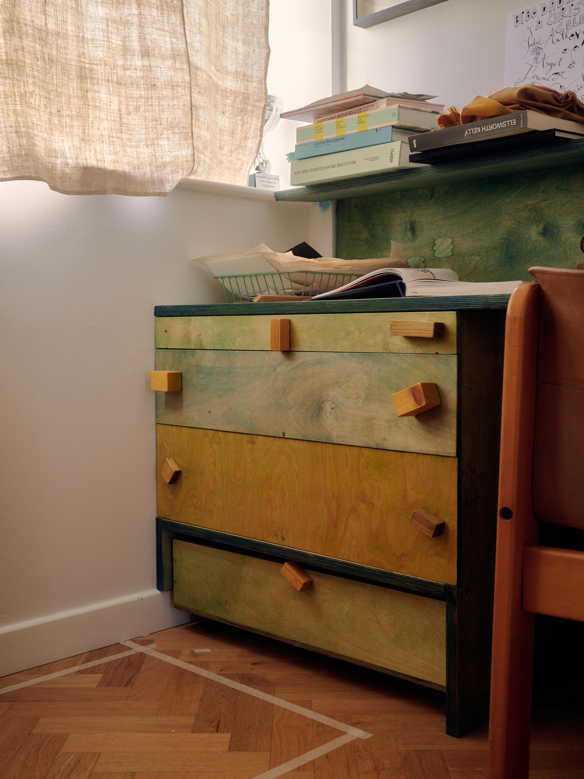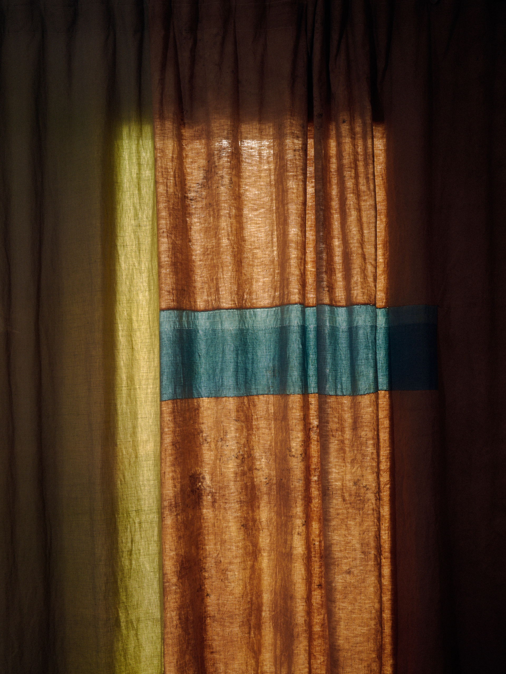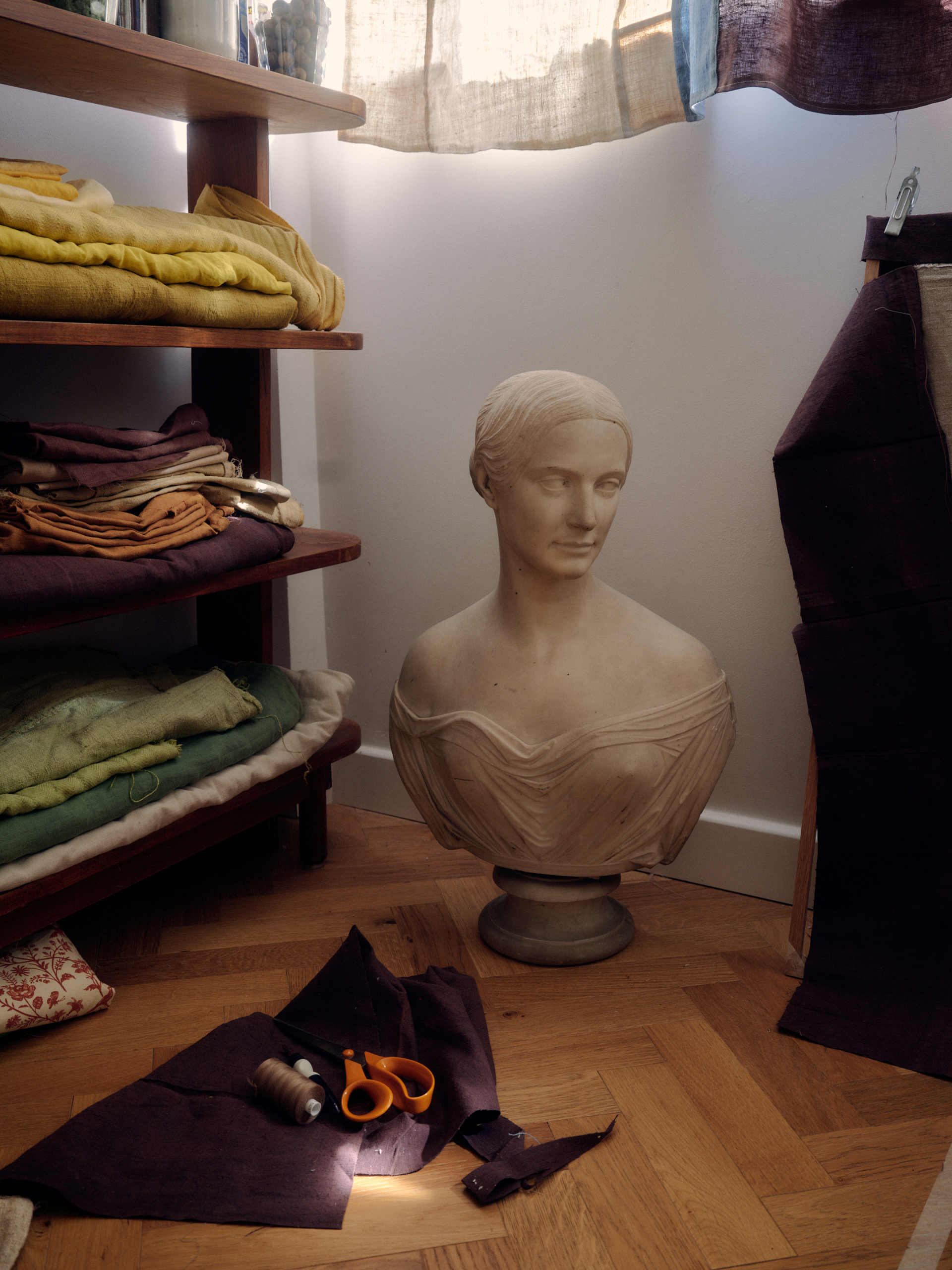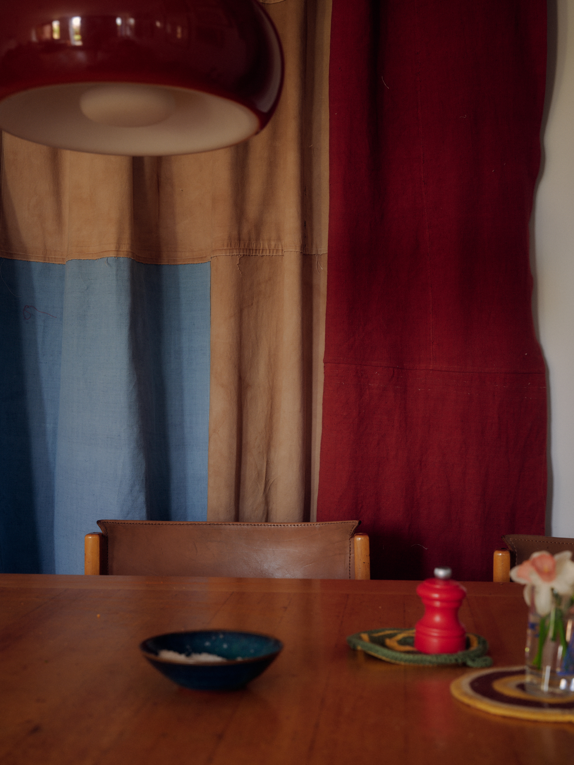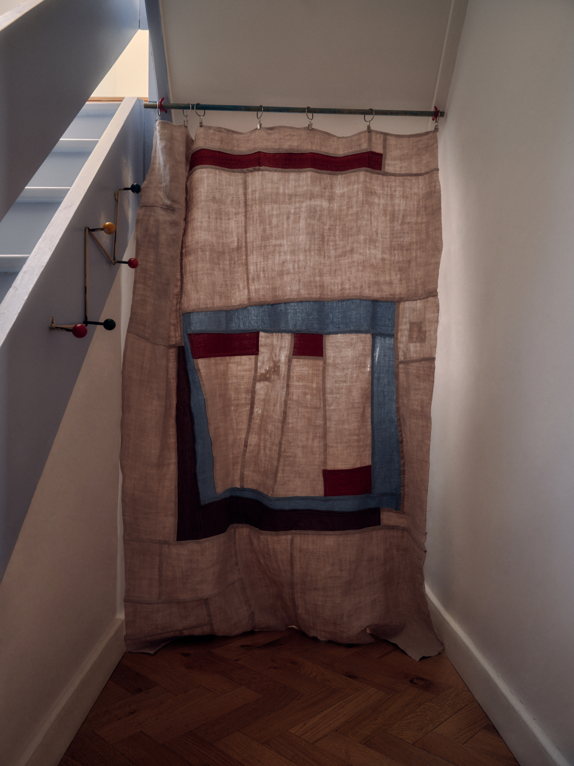Isabel: It’s huge. I mean, it’s where everything happens. I lay things out in the kitchen, dye on the hob, sew upstairs. In some ways, it’s lovely, being in the space where the work is going to live. I think a lot about light – how the panels soften it, filter it, make a room feel warmer. That sense of cosiness and shelter really appeals to me. I do fantasise about a big studio with enough space to lay everything out properly, but being at home means I’m around for the kids, and that’s something that this different work pattern has allowed me to commit to.