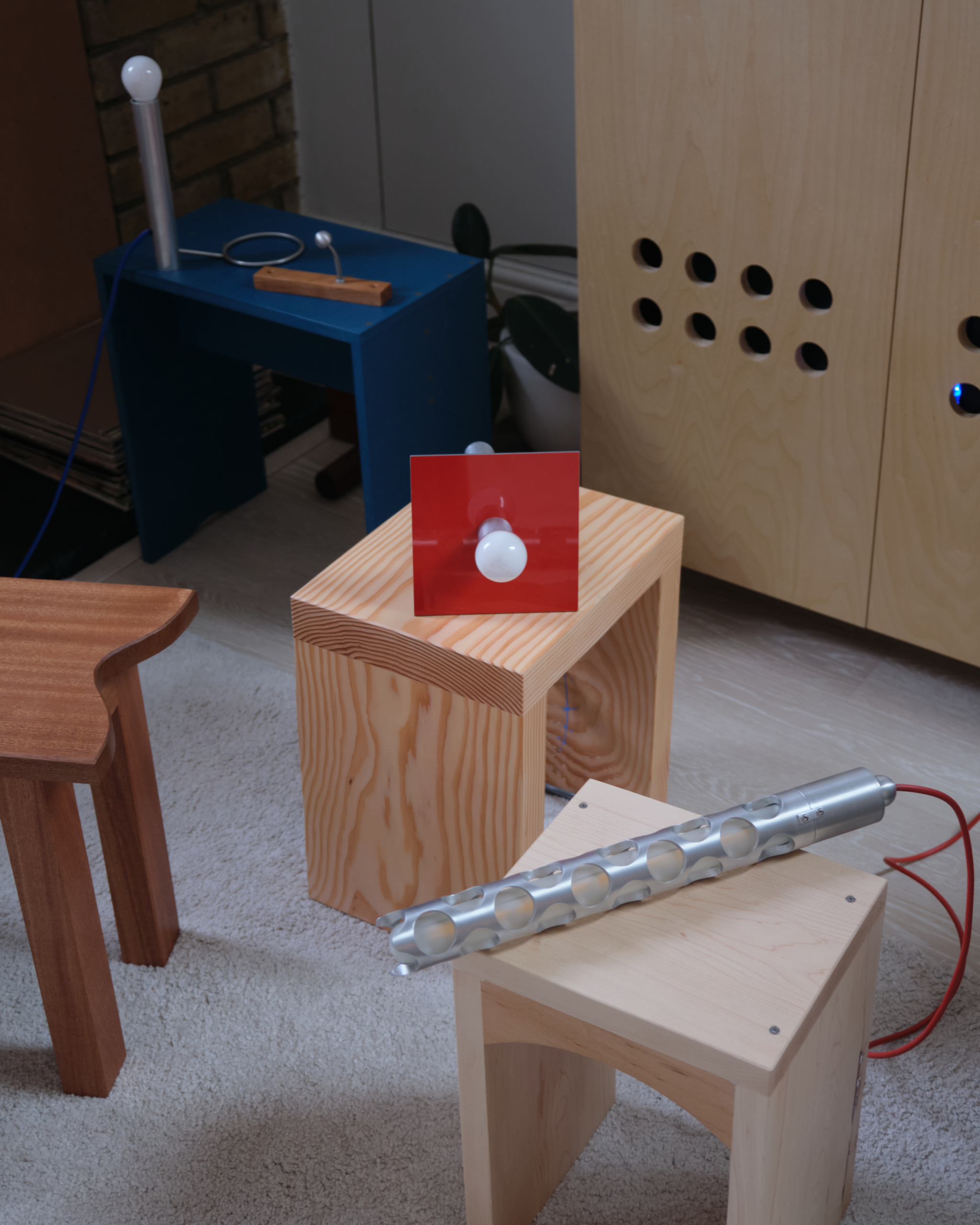In the early days of my practice, I was really just trying to fill my own flat. My girlfriend would say, “We could buy this at IKEA,” and I’d refuse because it was a great excuse to try something out. I made the red stool about three years ago and I sit on that every day.