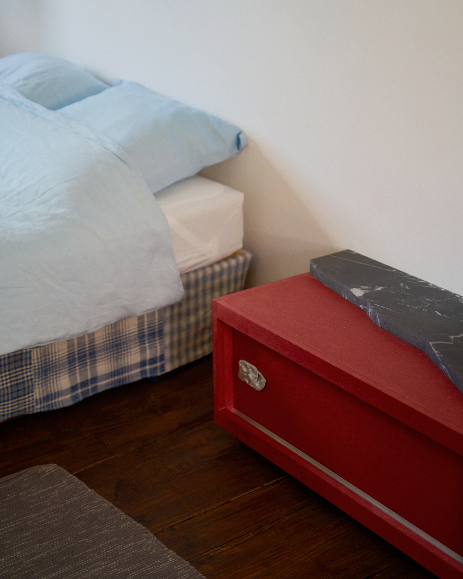After nine months of renovation, the couple moved to Berlin, where they’re now based – working from a home studio and continuing to expand their practice. But the gîte remains a kind of anchor: a place rooted in Madeleine’s history, made with their own hands, and shaped by a shared vision. “It was the perfect first project,” says Lewis. “A whole place, not just a room. A chance to make something from the ground up.”