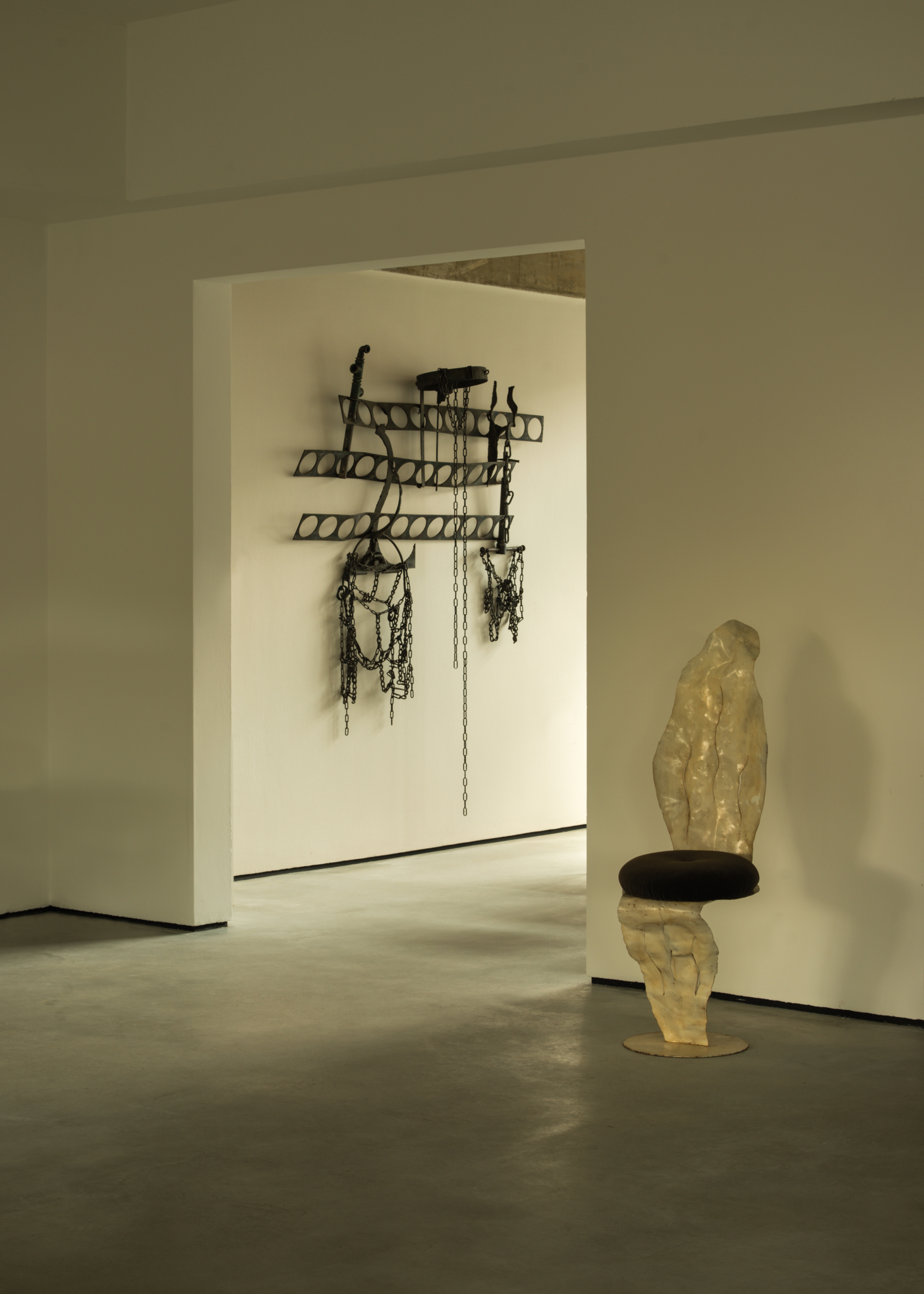 Béton Brut stages a retrospective of Italian iron artist Salvino Marsura, where forged roots and tendrils come up against chains and shackles. Unruly, poetic, and functional all at once, his work bends iron into a nonconformist expression of freedom, and is rendered only more wild by being put into conversation with Jean Michel Frank’s restrained furniture.
