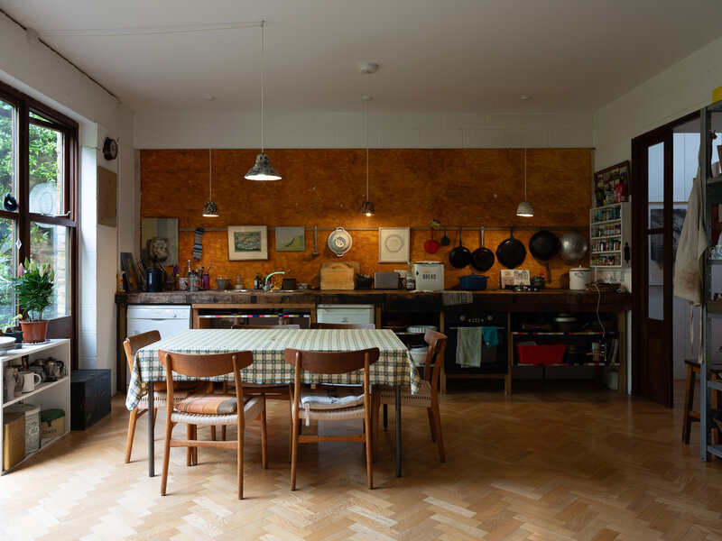 Peter St John’s early self-made home, made with his classmate Marcus Lee and partner Siw Thomas, was shaped from salvaged materials, limited means, and the raw gumption of a newly-qualified architect ready to put their ideas into practice. Split sections, cast-in-situ concrete and painted plywood ceilings show how economy and invention can produce a house of abundant character.