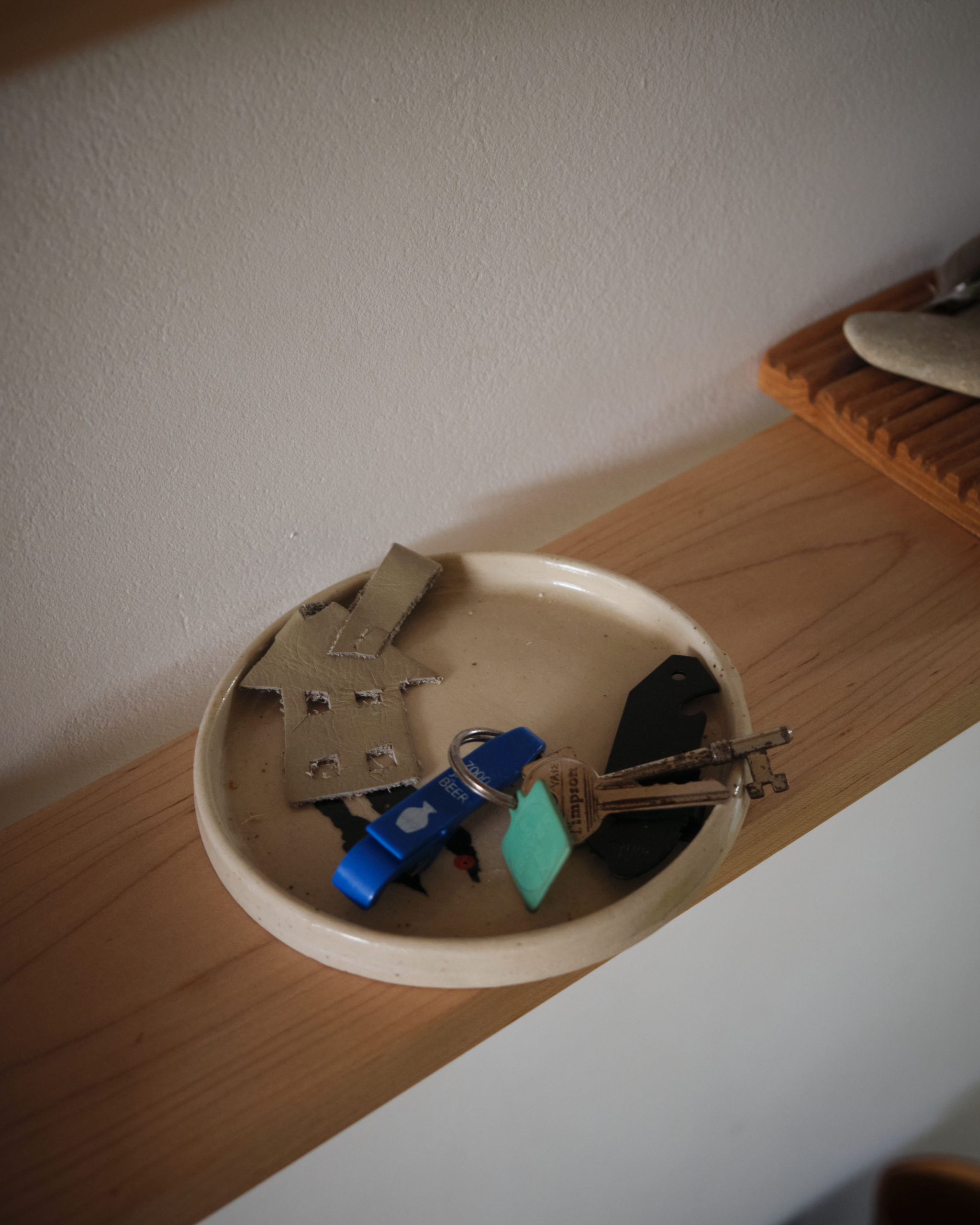 As with his home, Thomas’s personal work of furniture, jewellery, and objects – that sit somewhere between utility and sculpture – grows from a desire to sharpen his skills and test his ideas. After graduating in industrial design in 2019, he stepped away from the rigour and technical specificity of his education and towards a looser, more intuitive way of working. Now, he is able to carve wood, bend and cast metal and free-form ceramics with few constraints beyond deciding which processes he wants to refine, the ideas he’s curious about, or, at times, the simple impulse to make something new.
