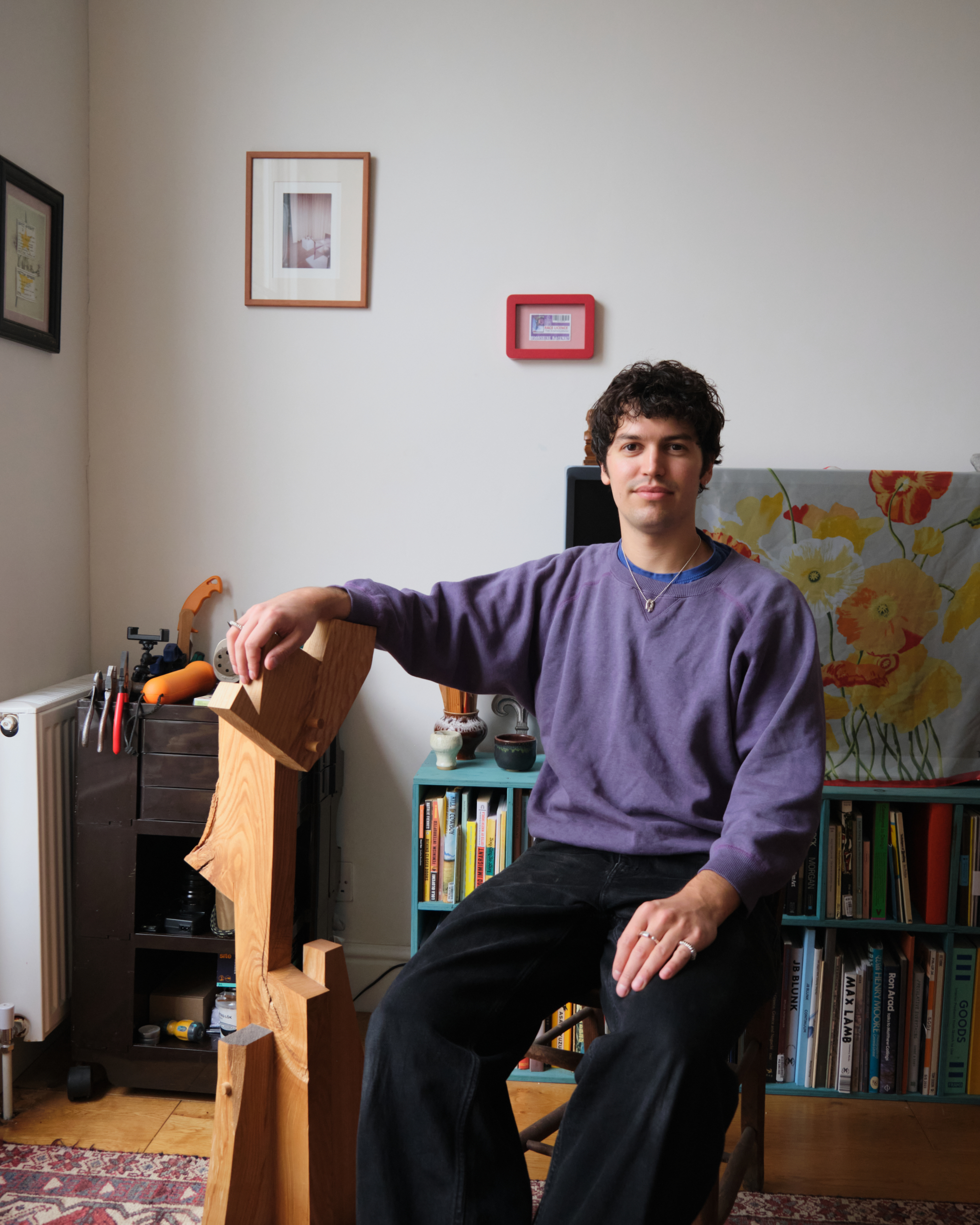 I made a stool from the reclaimed timber and put it on Instagram. Around the same time I was trying to buy a fleece on Depop, which was linked to my Instagram account. The deal fell through, but the person messaged me afterwards to say she liked my work. She showed it to her boss, who ran SEEDS Gallery, and they asked if I wanted to show the piece.