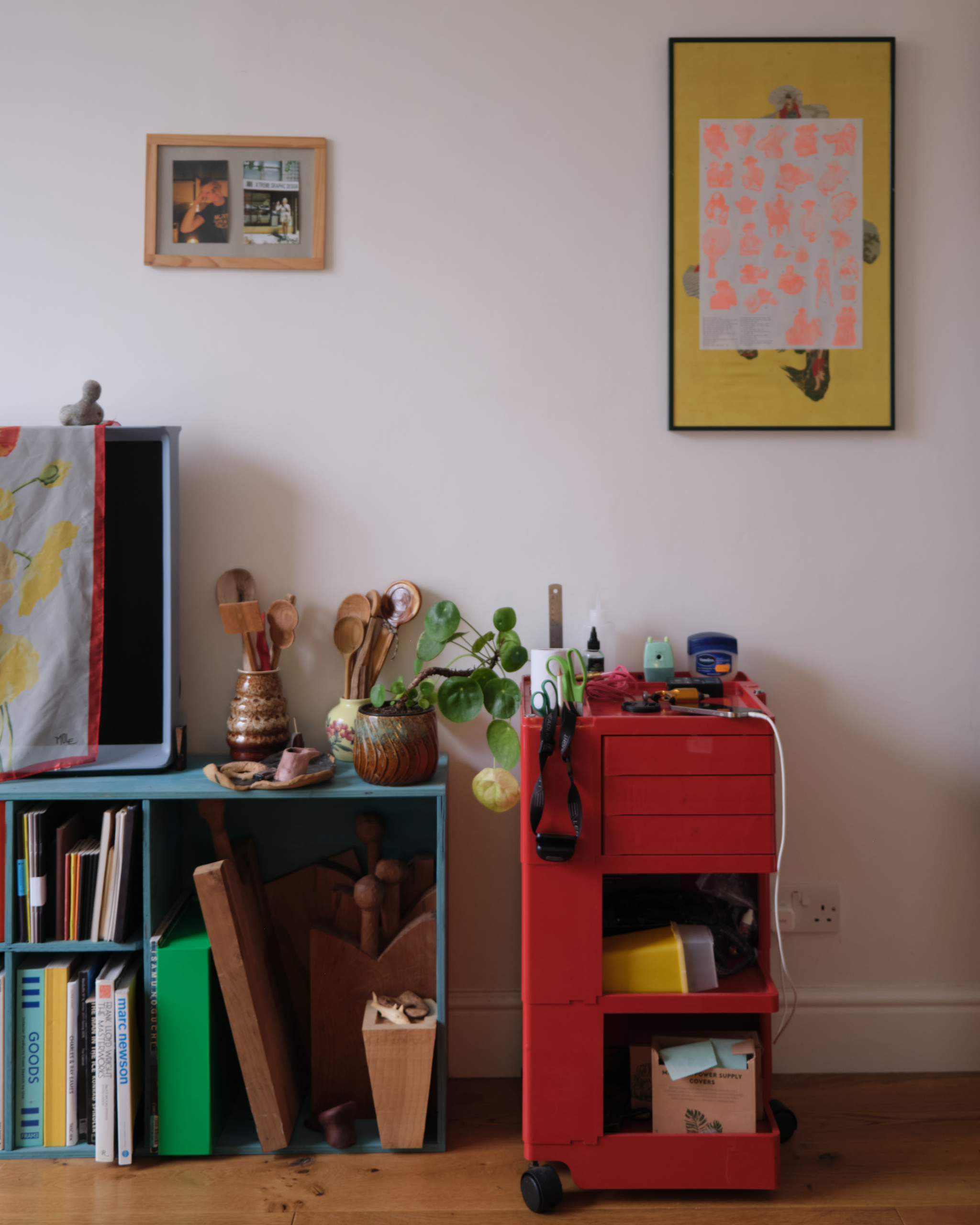 When most of us say we’d like to build our own house one day, we use ‘build’ in a non-literal way that implies a heavy – if not total – amount of outsourcing. What designer Thomas Wheller means when he says he wants to build his own house is quite literal, and extends far beyond the walls themselves: the structure, the furniture, the pottery, even the clothes inside it. “I just want to make everything,” he says, standing in the kitchen of his current home. Despite being his first rental – shared with his partner for just two years – the flat in Peckham, south-east London, already clearly conveys that intent, full as it is of furniture, objects and designs that reflect his interest in growing as a maker.